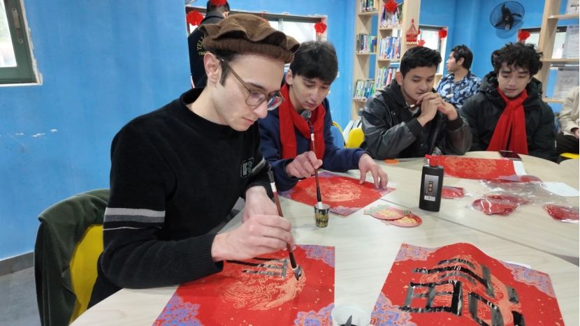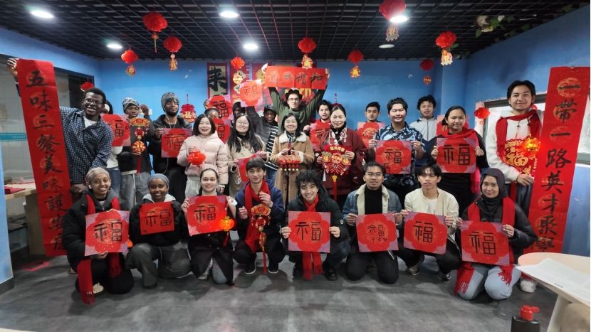 A Spring Festival cultural experience activity was organized for international students on Feb 10, celebrating the upcoming festival through traditional arts such as calligraphy and paper-cutting.