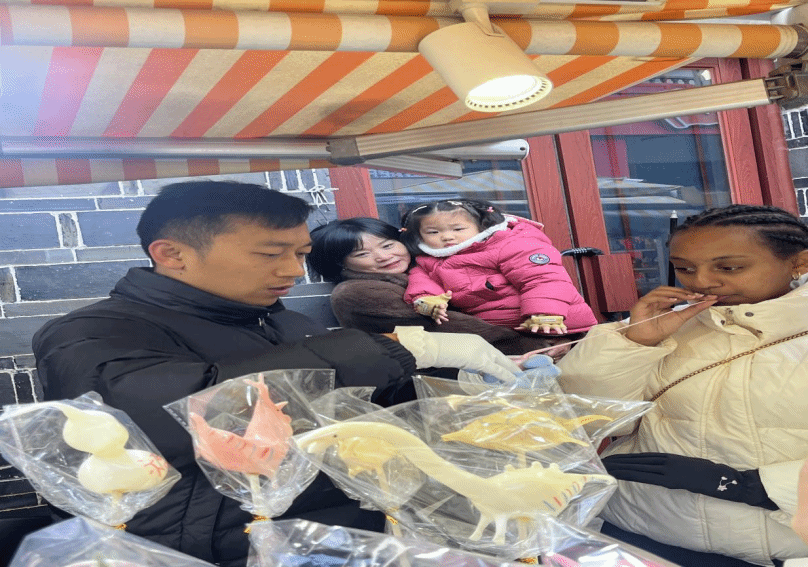 International students experienced the intangible cultural heritage craft of “sugar blowing”(chui tang ren)